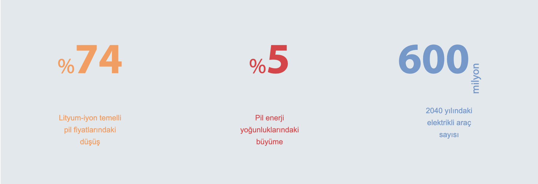 Elektrikli araçların yakaladığı bu ivmedeki bir diğer önemli faktör bu araçların pil teknolojilerinde yaşanan gelişmeler çerçevesinde daha ucuz hale gelmesi. 2010-2016 yılları arasında lityum-iyon temelli pil fiyatları %74 düşerken, bu pillerin enerji yoğunlukları ortalama %5 büyüme gösterdi. Yıllık pil üretim kapasitesinin mevcut 90GWh seviyesinden 2021’de 290GWh’ye çıkacağı öngörüsü arz zincirinin olgunlaşmakta olduğunu gösteriyor. Bu açıdan, elektrikli araçların teşvik uygulamalarının olmadığı bir ortamda 2025 yılından itibaren içten yanmalı motorlu araçlarla rekabet edebileceği tahmini oldukça anlamlı.