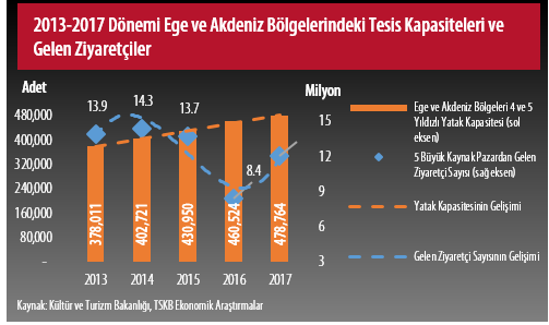 Artan ziyaretçi hacmiyle birlikte büyüyen konaklama kapasitesi, tesislerin yaz aylarında kapasitelerini doldurmalarına müsaade etse de, geriye kalan aylarda atıl vaziyette kalan oda kapasitesinin de artmasına sebep oluyor. Benzer konseptte her yeni açılan tesisin; rekabet koşulları gereği nispeten daha eski tesislerden talep kaymalarına yol açtığı, talep toplamak adına da sektör genelinde fiyatlama stratejilerini aşağı yönlü etkilediği biliniyor.