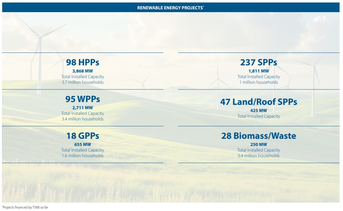 The energy projects which TSKB has transferred resources account for 14% of Türkiye's total installed renewable energy capacity.