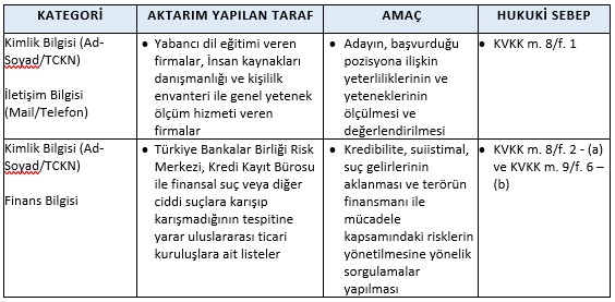 - İş sözleşmesinin kurulabilmesi için başvurulan pozisyon için uygunluğunuzun ölçülmesi ve değerlendirmesi bakımından gerekli olması
